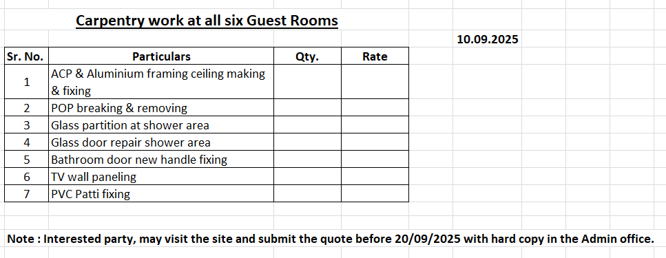 | 10th May 2022 | Water proofing at terrace above guest rooms | Click Here |