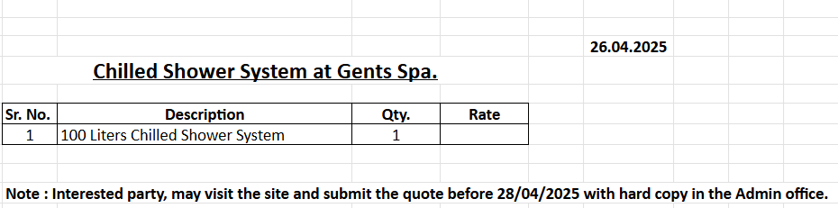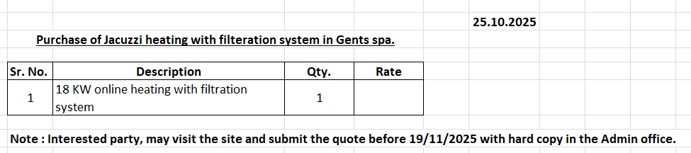 | 1st July 2023 | Renovation of Gents Spa ceiling | Click Here |