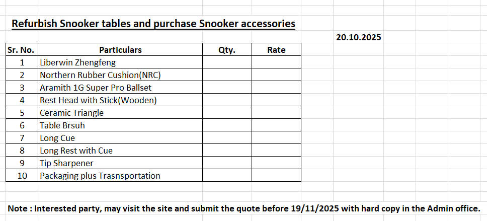 | 1st March 2023 | Purchase of Accessories for Snooker | Click Here |