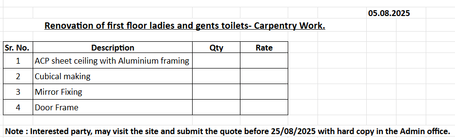 | 5th August 2025 | Renovation of first floor ladies and gents toilets - Carpentry Work. | Click Here |
